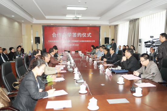 在签约仪式上,教育厅副厅长陈保平和省文联副主席戏曲协会主席杨长春先后做了热情洋溢的讲话和致辞,他们对我校与院团合作办学这一举措给予了充分的肯定,学校瞄准社会需求,填补行业空白点,培养戏曲人才,解决甘肃省戏曲人才紧缺的现状,发挥学校优势与院团合作,优势互补,发挥剧院的演出实践资源,将课堂教学和舞台表演有机结合,共建陇剧秦腔秦腔教学实践基地,培养学生的表演综合能力。