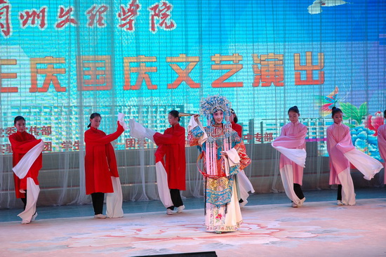 在一个多小时的时间里,我校师生以自己特有的方式迎新生、庆国庆。