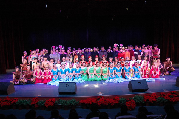 最后,中专部主任张世成、总支书记刘天安、副主任金亮、副主任宋斌等和演职人员合影留念。