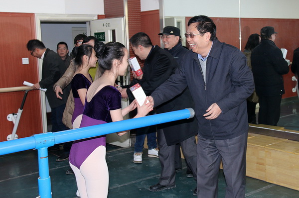 在新年到来之际,12月30日上午,校长汪建华一行来到艺术中专部看望慰问了部分13、14、15级戏曲、舞蹈专业学生。