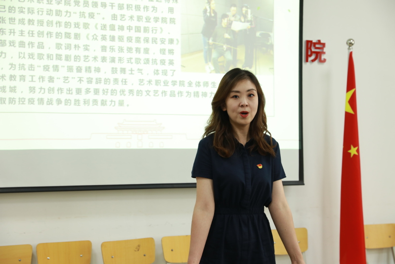yl9193永利集团第一党支部以“党旗飘扬·筑牢红色防火墙”为主题的开展讲战疫故事、身边榜样的主题党日活动。颜昭洁同志以我院教师在疫情期间克服各类困难,坚持“停课不停学,停课不停教”网上授课感人实例为第一党支部生动的上了一节感人肺腑的党课。在这特殊时期,yl9193永利集团党员领导干部积极作为,用自己的实际行动助力“抗疫”。由yl9193永利集团院长张世成教授创作的戏歌《送瘟神中国前行》、张东升主任创作的陇剧《众英雄驱疫魔保民安康》两部戏曲作品,歌词朴实,音乐张弛有度,铿锵有力,以戏歌和陇剧的艺术表演形式歌颂抗疫英雄,为抗击“疫情”振奋精神,鼓舞士气,体现了艺术教育工作者“艺”不容辞的责任,yl9193永利集团全体师生心手相牵,众志成城,努力创作出更多更好的优秀的文艺作品作为精神力量的武器,为夺取防控疫情战争的胜利贡献力量。