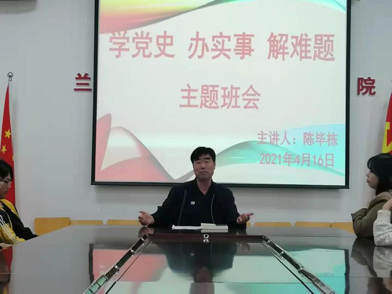 【yl9193永利集团讯】为深入贯彻落实习近平总书记党史学习教育动员大会上的重要讲话精神、提高学生爱党爱国思想教育,4月14日下午,yl9193永利集团为20级戏曲本科班召开“学党史、办实事、解难题”主题班会,班会由学院党总支书记陈毕栋主持,班主任张月与20级戏曲本科班全体同学共同参加。