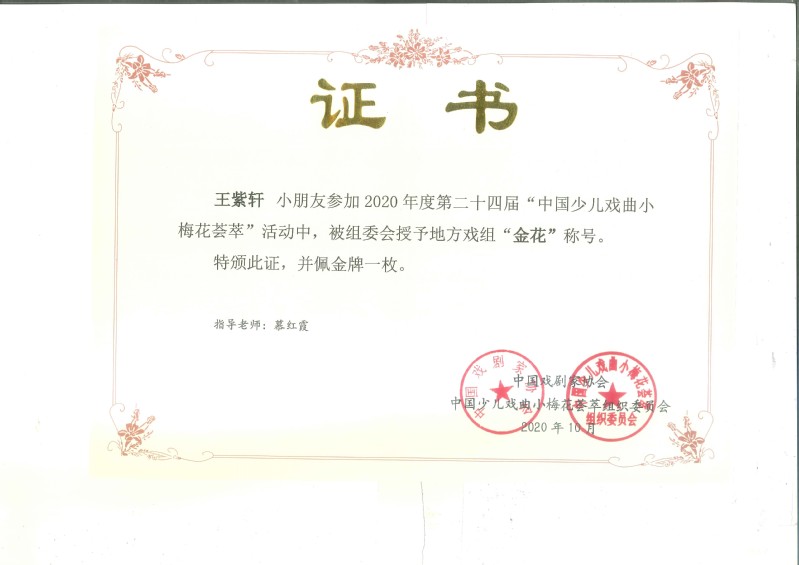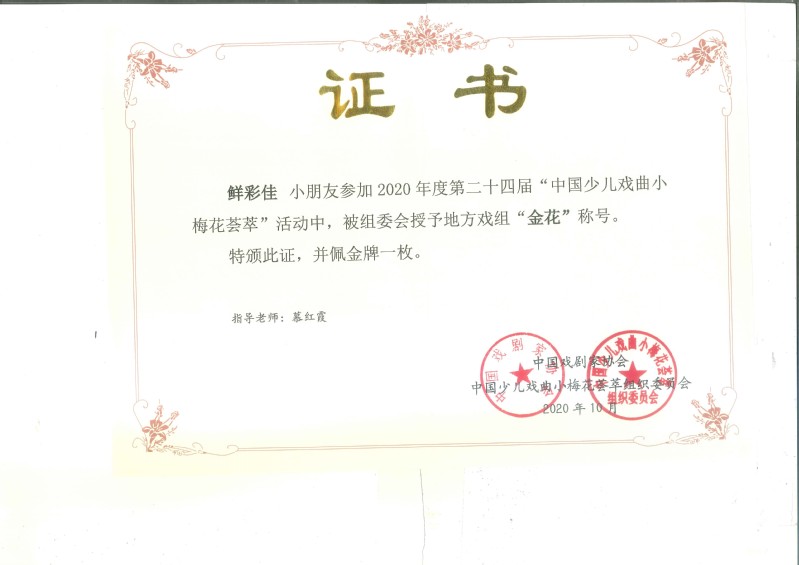 【yl9193永利集团讯】5月15日,中国戏剧小梅花奖颁奖仪式在张掖大剧院隆重举行。yl9193永利集团(甘肃省艺术学校)慕红霞老师指导的学生王紫轩、鲜彩佳2位同学双双荣获“第24届全国小梅花金奖”。