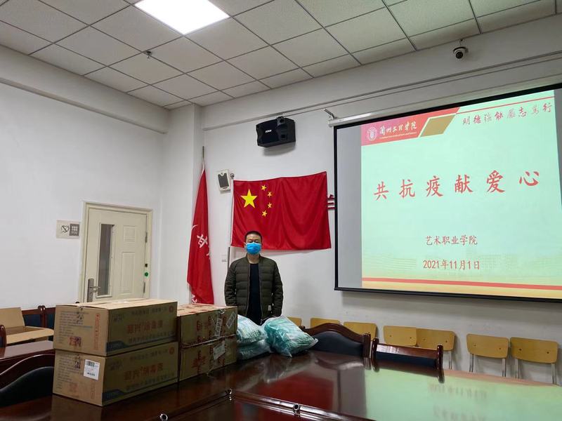 当前正是新冠肺炎疫情防控关键期,消毒液、口罩等疫情防控防护用品告急,短时间内采购难度大,然而总有一股暖流能抵御疫情的侵袭,总有一份温情能传递抗击疫情的信心。11月1日第二党支部教师倪剑为全校学生捐赠了2000枚口和500瓶消毒液,为我校顺利进行抗疫工作提供了有力的保障。