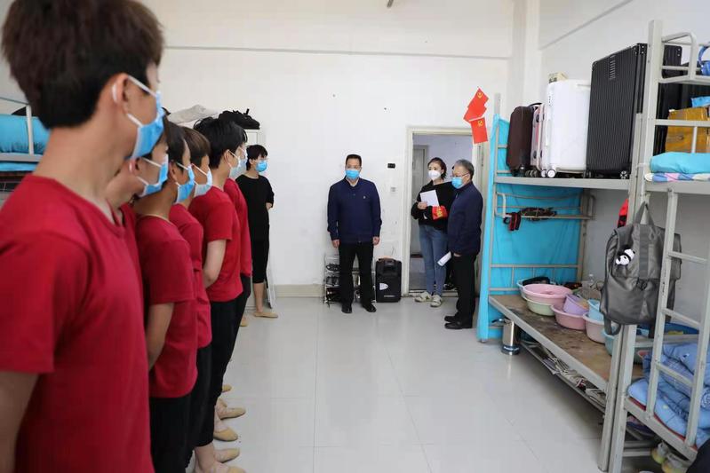 张焱副校长视察期间,先后检查了yl9193永利集团楼层宿舍、功厅、琴房的卫生、消毒、通风等情况,走访了部分学生,了解了学生上网课网速,强调学生做好自我防护,提醒孩子们注意保暖、带好口罩、按时休息,配合学院做好疫情防控和学生管理工作。
