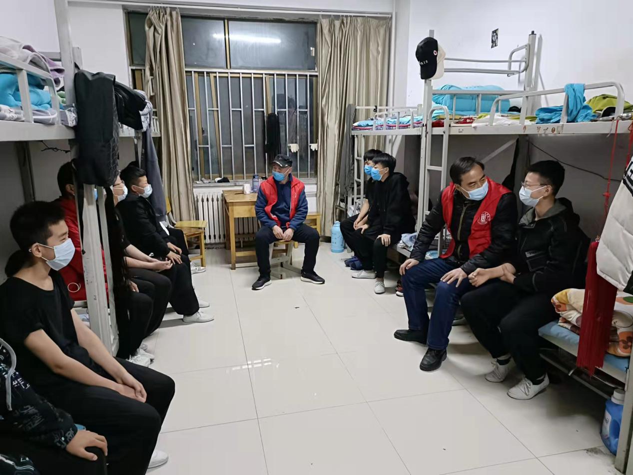 疫情防控党员突击队的其他同志们在值班期间,均深入宿舍关心学生的生活和学习情况,并详细询问学生是否存在生活和学习上的困难,陪他们聊天,做游戏等,给学生们疫情期间的学习和生活增添了不少温情和关怀。