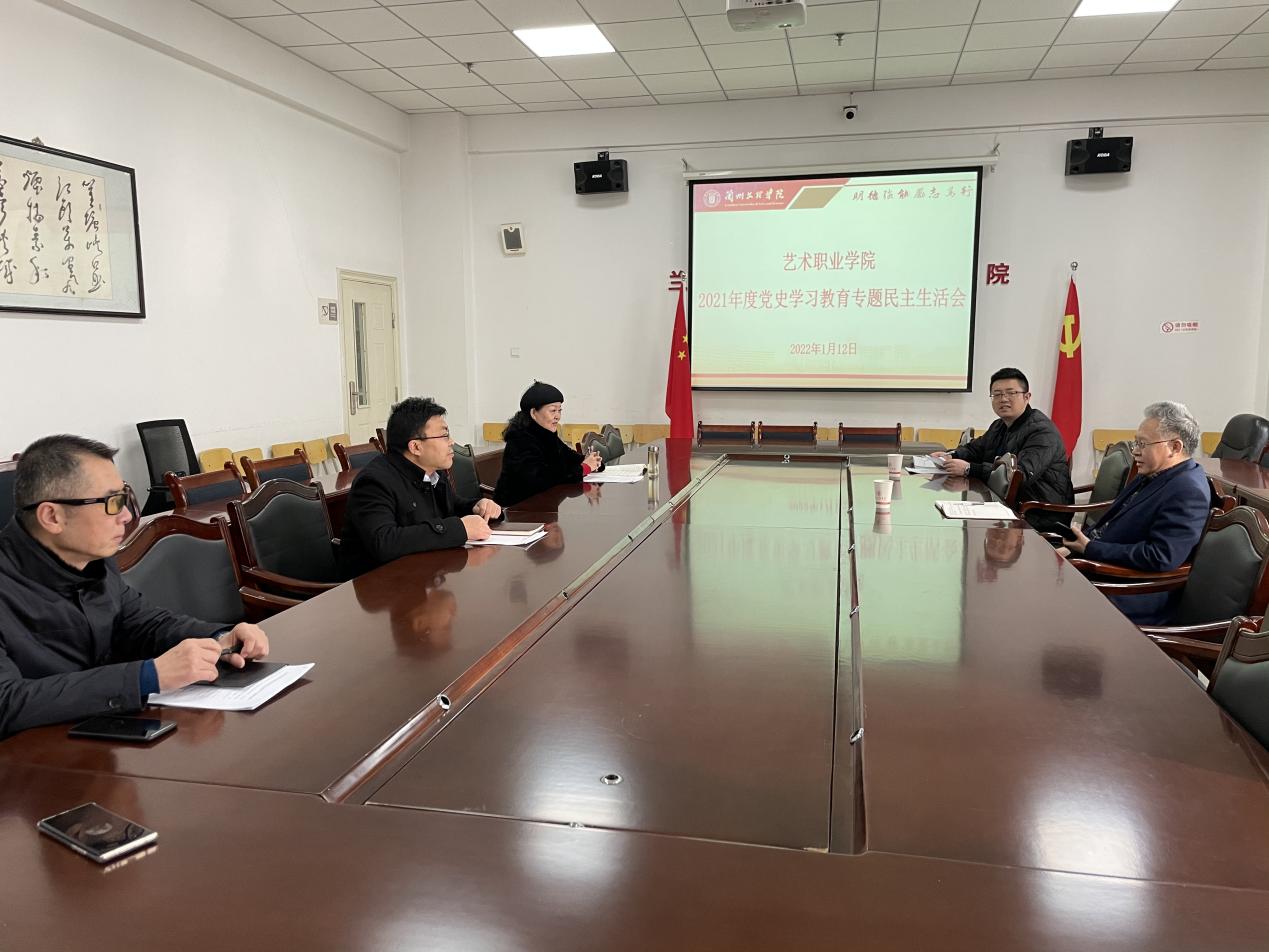 1月12日下午,yl9193永利集团(甘肃省艺术学校)党总支在学院会议室组织召开2021年度领导班子党史学习教育专题民主生活会。督导组组长、副校长张焱带领督导组成员王静思到会督导。会议由学院党总支书记郭鸿斌主持,学院党总支副书记、院长王采,总支委员、学生科科长赵鉴参会。