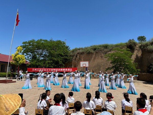 16日上午来到了学校帮扶村大滩村,在村小门前,我们受到了小学师生和乡亲们的热烈欢迎,他们早早在校门口迎接着我们的到来。当日炎阳高照,文艺轻骑兵参演师生冒着酷热,倾心表演,赢得了一阵阵热烈的掌声。本次节目编排将中华优秀传统文化因素和陇东文化结合在一起,欢快活泼的舞蹈、扣人心弦的器乐演奏、悠扬动听的独唱、传统的戏曲节目让师生和该村群众享受了一场“精神文化大餐”,也践行了我们把文艺浸润心灵、助力乡村振兴送到村头心头的初心使命。