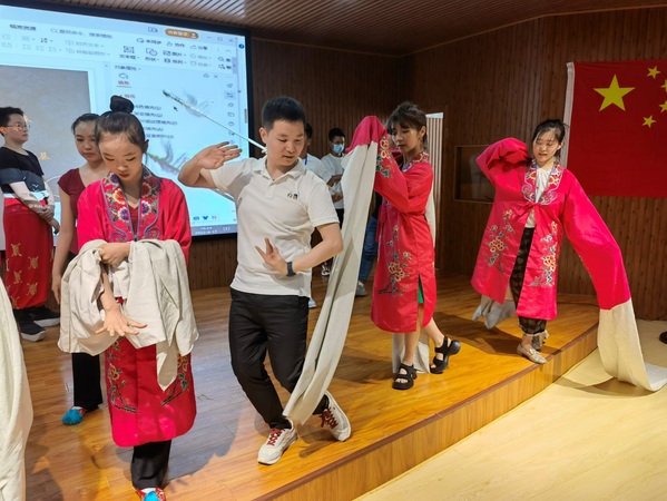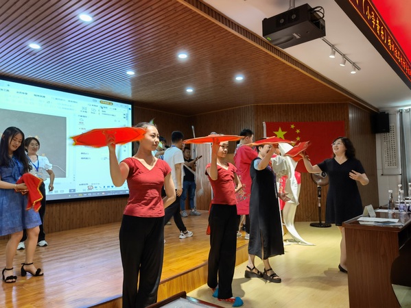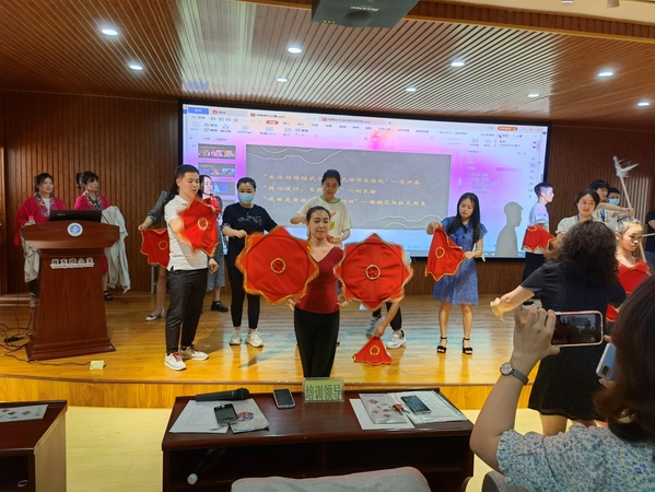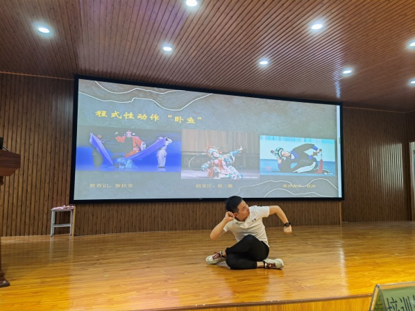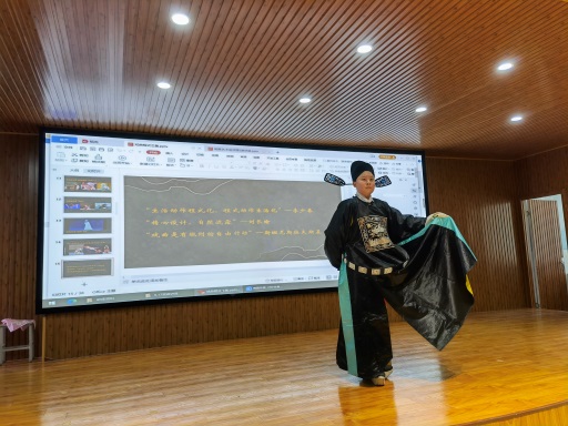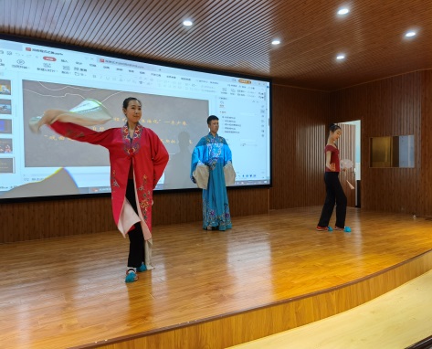 罗老师主要从戏曲的种类、秦腔和陇剧的渊源、实践体验三部分进行讲述,并将理论与实践相结合,带领学生现场展示戏曲小片段让大家直观的了解戏曲表演的程式性。讲授过程中的互动环节,更是将活动推向了高潮,学员们积极参与其中,实践体会戏曲手绢、水袖、花枪等基础动作,感受到了中华民族传统文化戏曲艺术的无穷魅力,激发其热爱民族文化,热爱祖国的深厚情感,进一步体会到我国戏曲文化的博大精深。