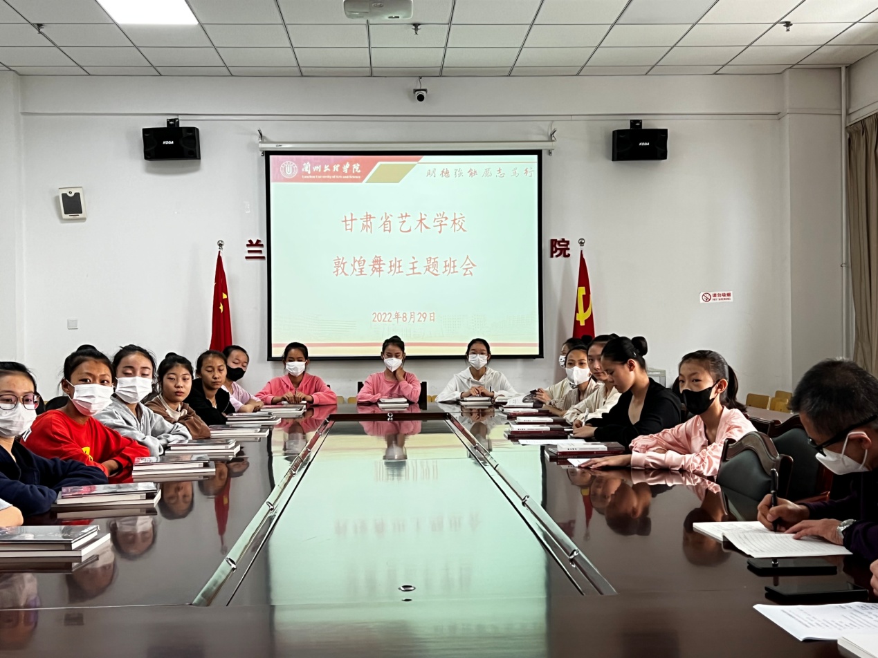 8月29日上午,为帮助2022级新生尽快适应新学校、新环境、新生活,树立学好敦煌舞,传承优秀文化,为学校特色发展助力的思想认识,学院(校)专门为2022级敦煌舞班举行了主题班会。会议由学校副院(校)长马建同志主持,党总支书记郭鸿斌、院(校)长王采、副院(校)长金亮、学生科长赵鉴,班主任周友爱和2022级敦煌舞班全体学生参加。