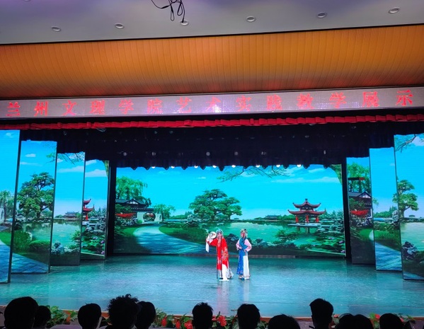 在展示活动中,同学们将课堂所学知识转化为艺术表现形式,倾尽全力用心用情地认真完成每一部作品。美轮美奂的敦煌舞《褰褰袖欲飞》,秦腔《裱花》,极具地方特色的裕固族舞蹈《美丽的萨柔娜》等剧目,充分展示了我院教师在文艺作品创作和剧目带动教学的成果。