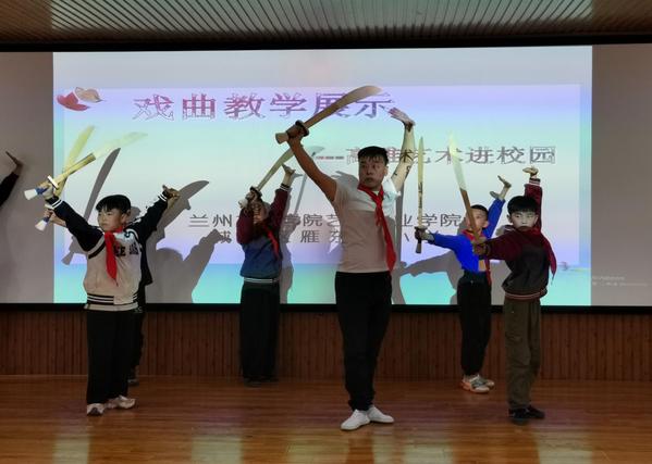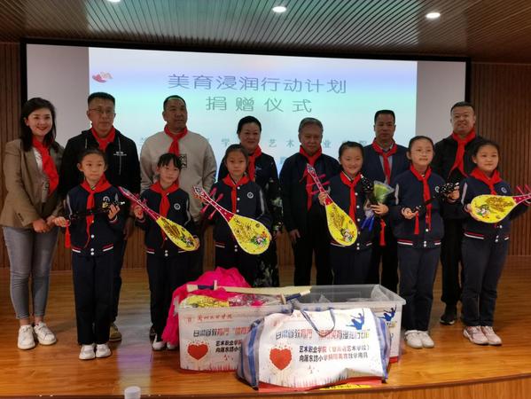 我院开展的“体育美育浸润行动计划”是甘肃省教育厅综合类支持项目,在学校的大力支持下、教务处牵头组织下,已多次派出教师与雁东路小学开展了美育教育活动。此次为雁东路小学捐赠了敦煌舞教学用具琵琶、头饰;戏曲教学用具单刀、手绢、水袖;音乐课教学用具葫芦丝及舞蹈课教学用具筷子、民族服装等种类丰富的艺术类课程教具数件。