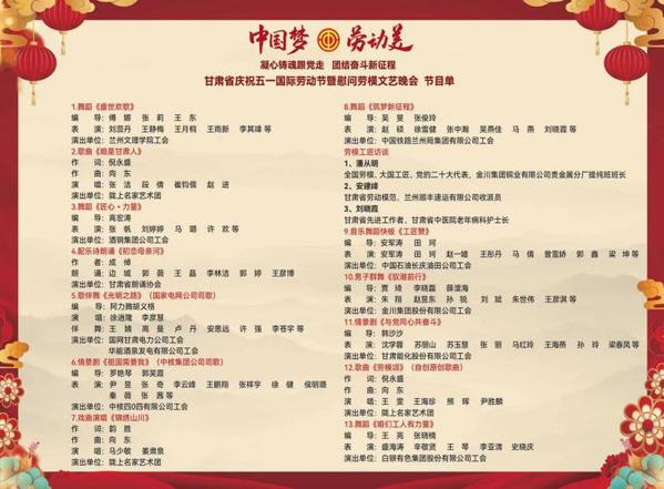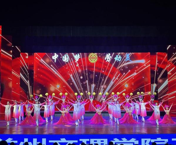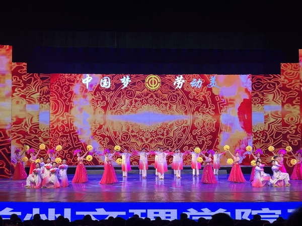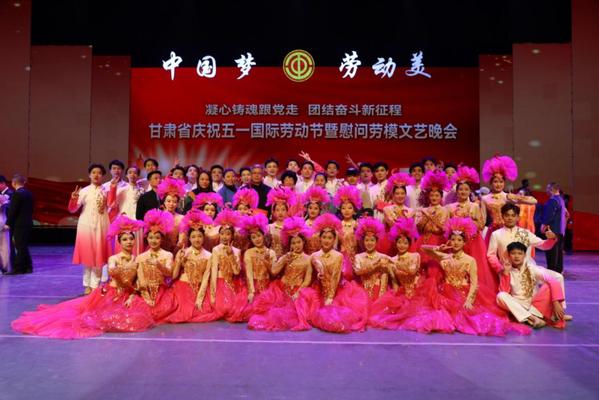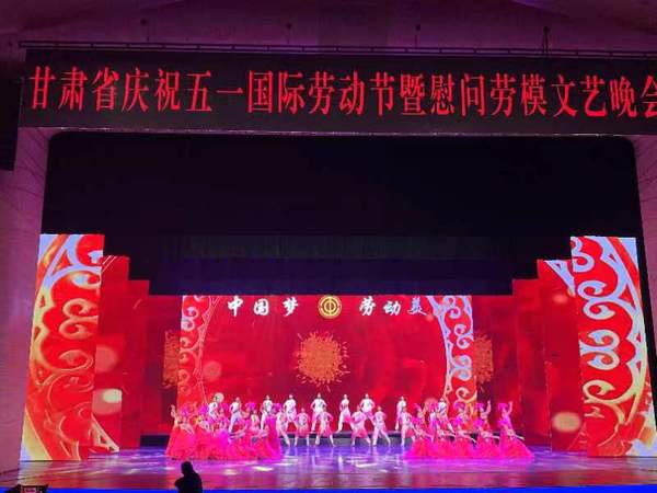 在“五一”国际劳动节来临之际,为深入学习贯彻习近平新时代中国特色社会主义思想,推进中国式现代化甘肃实践,落实“三抓三促”行动,在全社会大力弘扬劳模精神、劳动精神、工匠精神。2023年4月27日晚,由甘肃省总工会主办的“中国梦·劳动美——凝心铸魂跟党走,团结奋斗新征程”2023年甘肃省庆祝五一国际劳动节暨慰问劳模文艺晚会在兰州音乐厅举办,yl9193永利集团(甘肃省艺术学校)应邀代表学校工会参加此次演出活动。晚会在我院师生排演的舞蹈 《盛世欢歌》中拉开序幕,同学们以饱满的热情、蓬勃的朝气、飞扬的舞姿倾情演出,尽展风采,将晚会的开场气氛推向高潮,圆满完成了演出任务,得到省总工会及社会各界的一致好评。