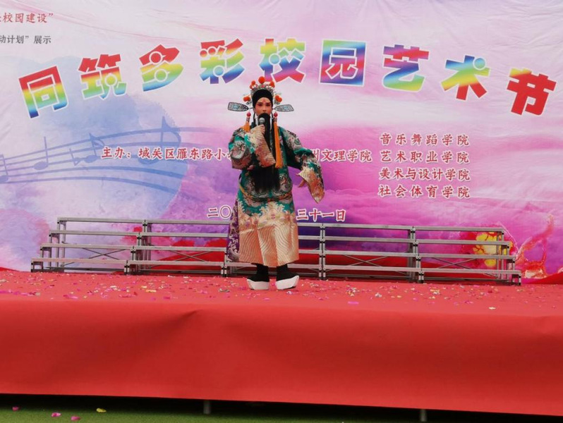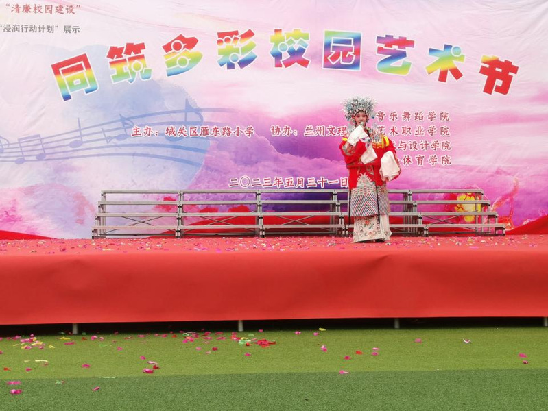 为进一步落实甘肃省教育厅“体育美育浸润行动计划”试点工作,推进新时代体育美育教育发展,为我省中小学体育美育均衡发展提供优质教育资源,引导师生强化服务社会意识,提升服务社会能力,以公益之心育人,发挥高校优势资源,2023年5月31日上午,yl9193永利集团(甘肃省艺术学校)戏曲专业学生参加了雁东路小学开展的“同筑多彩校园艺术节”活动。活动开始之前,雁东路小学选派少先队员为我院带队教师献上花束,对长期以来我院给予的支持帮助表示感谢。