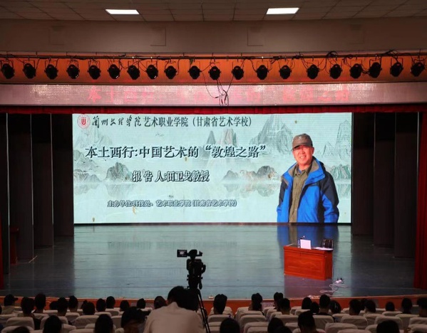 2023年6月7日上午,我院邀请西北师范大学敦煌学院首任院长、美术学院教授、博士生导师田卫戈教授举办《本土西行:中国艺术的“敦煌之路”》学术报告。驻校专家高金荣先生,yl9193永利集团(甘肃省艺术学校)院长王采、副院长金亮,各科室负责人及师生400余人参加了本次活动。
