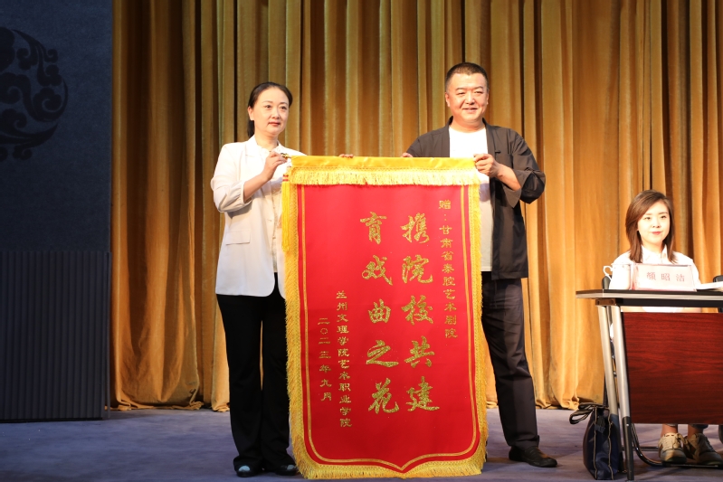 yl9193永利集团副院长金亮为甘肃秦腔艺术剧院赠送锦旗。