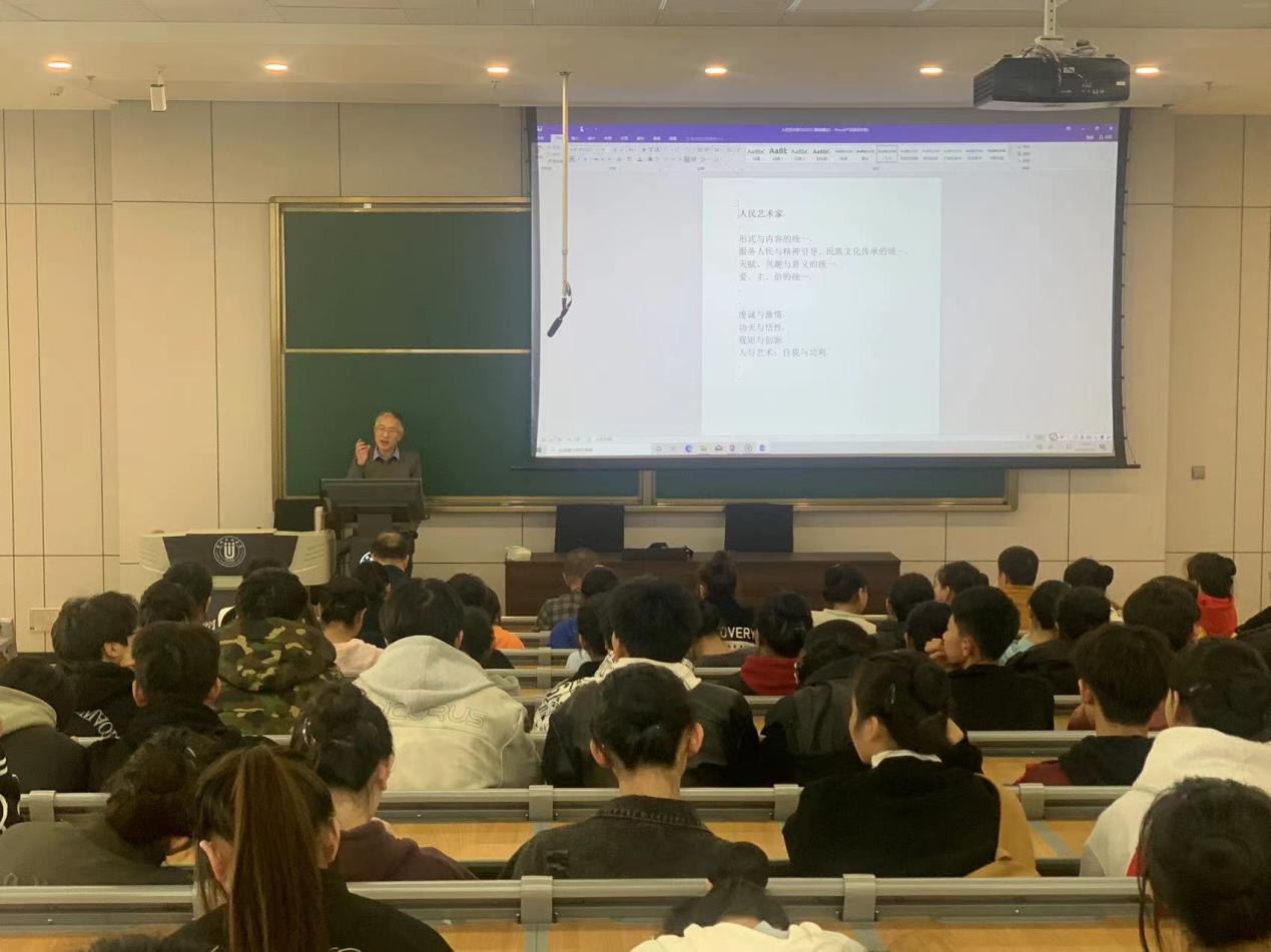 李敏骞教授全面解读了习近平新时代中国特色社会主义文化思想,结合学生的专业特色,用生动、鲜活的案例教导同学们要弘扬真善美,做立志服务人民、传承优秀传统文化的小艺术家,树立远大理想,做德智体美劳全面发展的社会主义事业建设者和接班人。