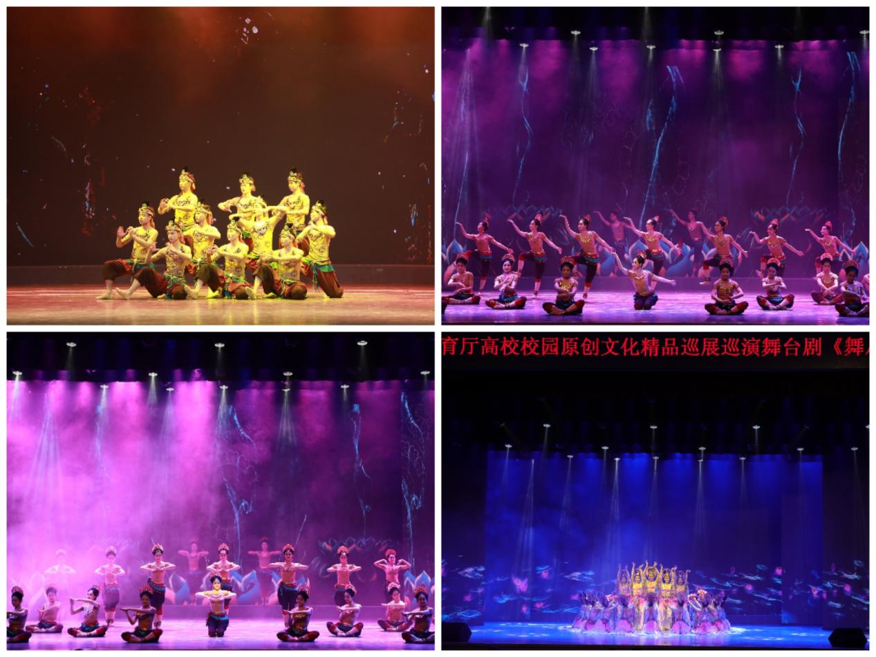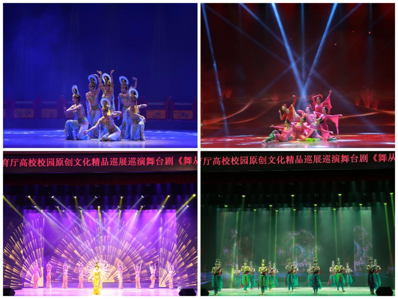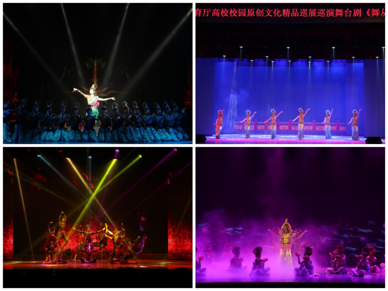 为推动各高校深入落实“时代新人铸魂工程”,根据《教育部办公厅关于开展高校校园原创文化精品巡展巡演的通知》精神和省教育厅安排,2024年4月17日—4月26日永利官网原创舞台剧《舞从敦煌来》分别在兰州工商学院、永利官网、兰州大学、兰州政法大学、兰州石化职业技术大学、甘肃财贸职业学院、甘肃卫生职业学院等七所高校展演。