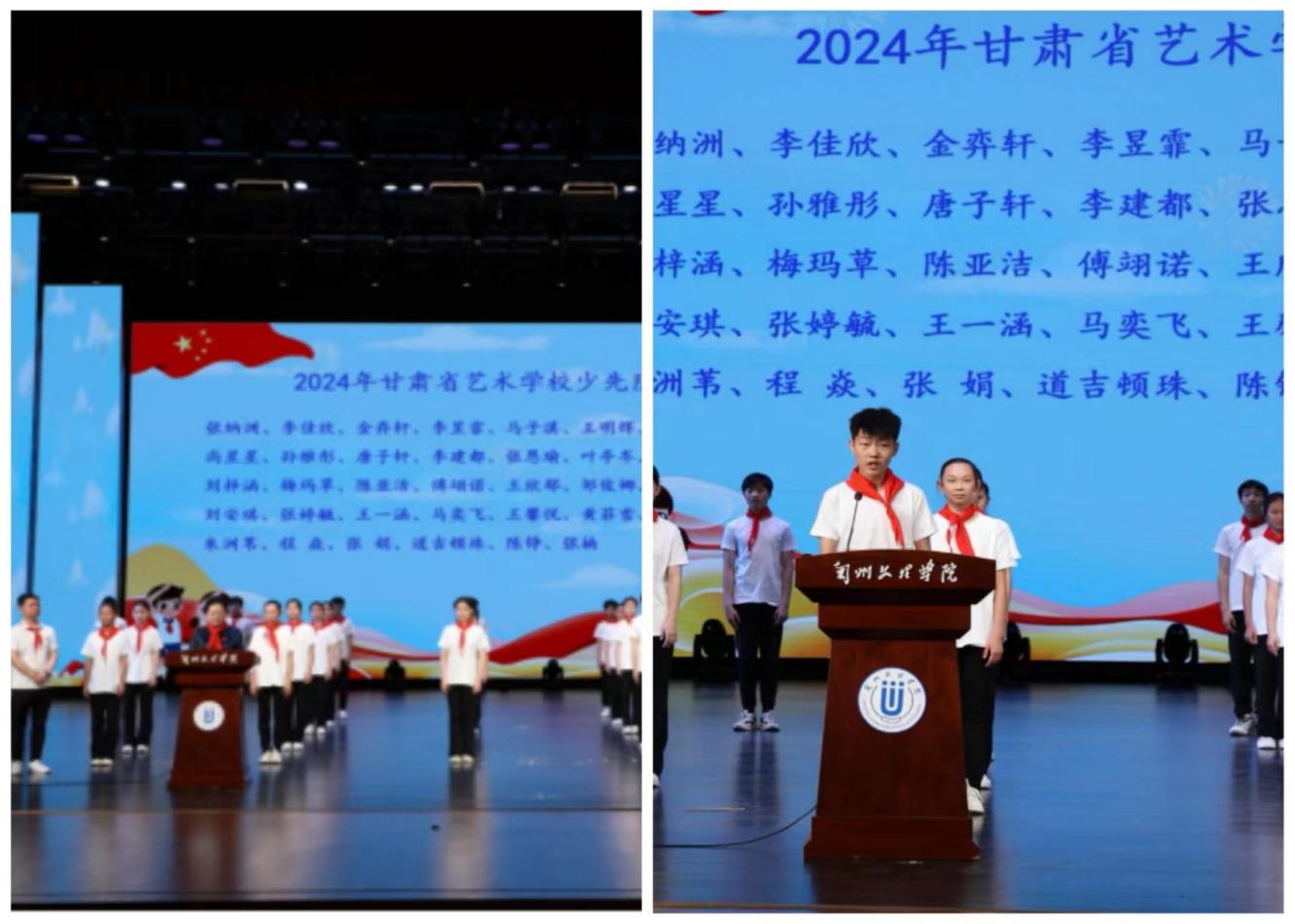 火红的队旗高高飘扬,指引我们前进的方向,鲜艳的红领巾系满理想,载着我们扬帆启航,伴随着祖国前进的步伐,中国少年先锋队走过73年的光辉历程,在这个欢乐喜庆的节日里,甘肃省艺术学校举行新队员入队仪式。