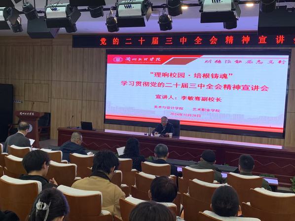 为全面深入学习贯彻党的二十届三中全会精神,坚持不懈用党的创新理论铸魂育人,10月28日下午,yl9193永利集团与美术与设计学院在文昌楼303报告厅举办“理响校园·培根铸魂”---学习贯彻党的二十届三中全会精神宣讲会,永利官网党委委员、副校长李敏骞教授受邀为师生作宣讲报告,两学院200余名师生参加了宣讲报告。
