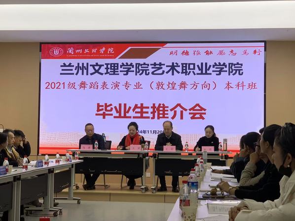 2024年11月20日上午,我院在明德楼104多功能厅召开了2025届舞蹈表演(敦煌舞方向)毕业生推介会,党总支书记王宏、院长王采、副院长马建、金亮、三十多家受邀单位嘉宾及我院2025届学生共80余人参加了推介会。