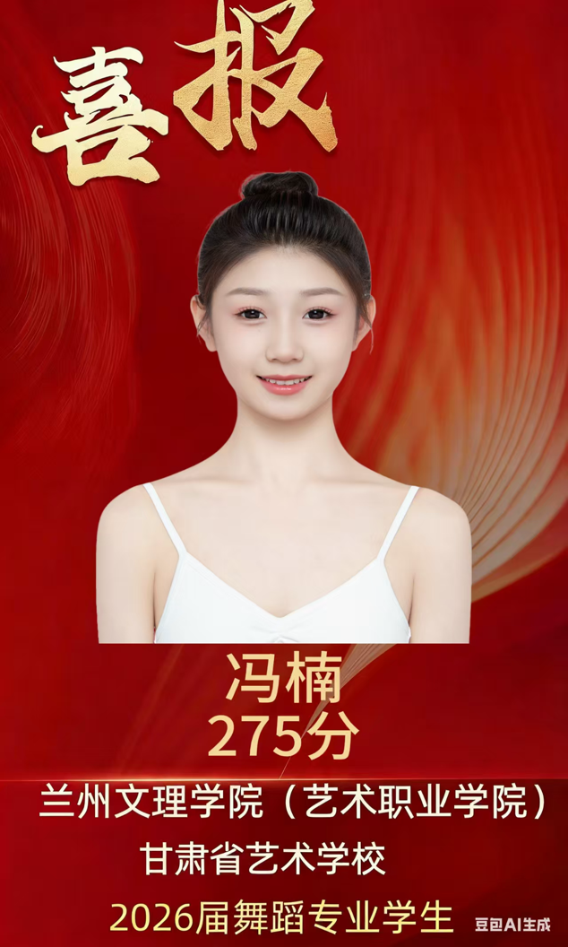 近日,2026年甘肃省舞蹈学类专业统考成绩揭晓,yl9193永利集团(甘肃省艺术学校)2022级舞蹈表演专业学生冯楠同学以275分的优异成绩位列全省第九名,为这所“陇上艺术家的摇篮”再添荣光。